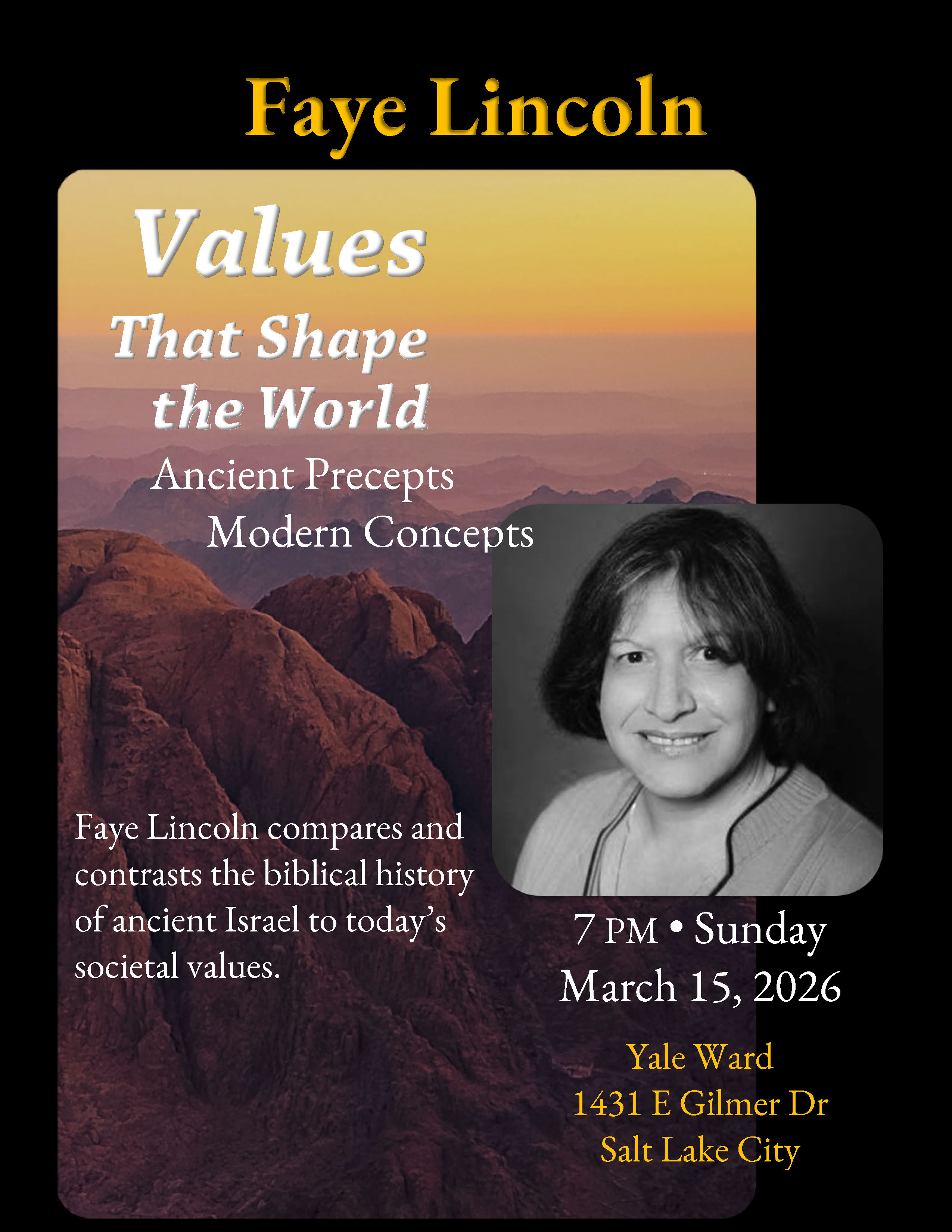 Faye Lincoln brings ancient Israel’s biblical history to Yale Ward for an illuminating presentation grounded in her bestselling Values That Shape the World.